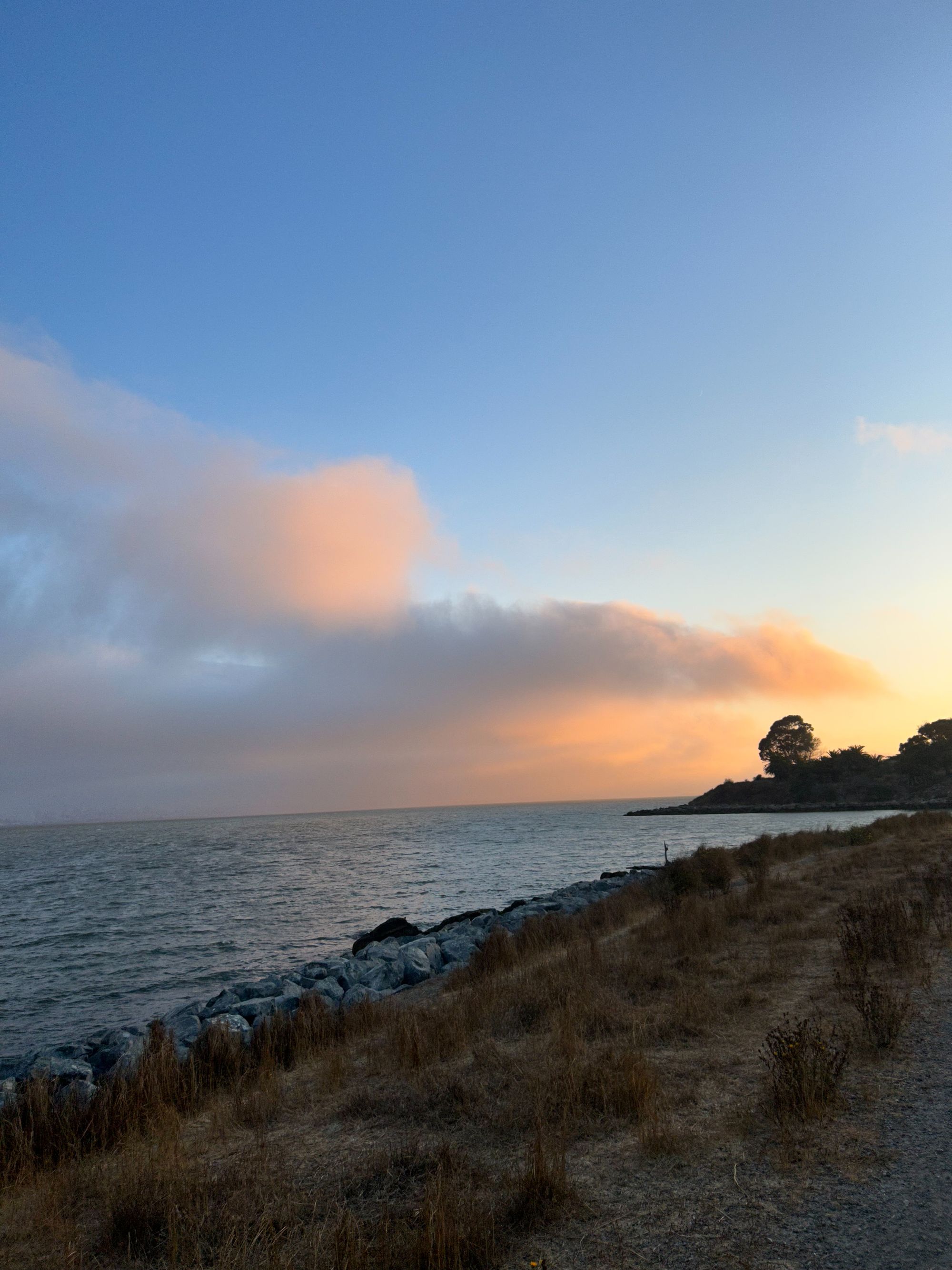 On one of my mini road trips, I meandered out to the Berkeley Marina just before sunset. I stared out at the bay and realized I could see the general area where I was born. This is where I’m from and all I could do was stare out at the ocean in strange bewilderment. A bundle of water fell from the sky and landed right about here, 27 years ago. I’ve been carrying around the same vessel of spit and blood and jizz, tripping and stumbling and managing not to crack the whole thing open as I fell down. One day, I’ll fall over for the last time and spill it all back into the earth, the vessel obliterated. Eventually, that spill will find its way to the nearest body of water, and maybe someday it’ll flow back into the Pacific. Maybe it’ll evaporate, dance up into the troposphere.