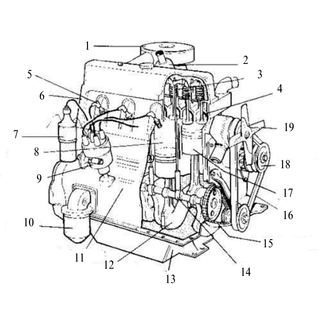 11) pain 12) crankshaft 13) oil sump 14) feet 15) wanna makeout? 16) This is fiber that goes into